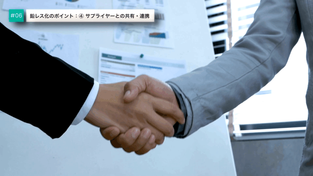 情報を共有し、今どのようなプロセスになっているか?を共有する事でスムーズに鉛レス化を対応する事が可能です。