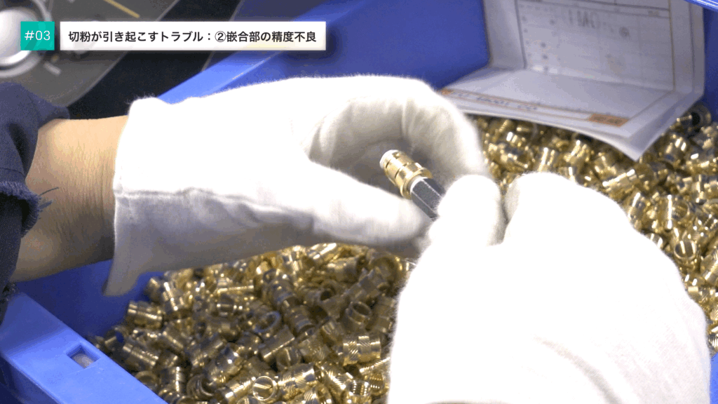 実は切粉の多くは、圧入前の輸送や供給時にすでに発生しています。