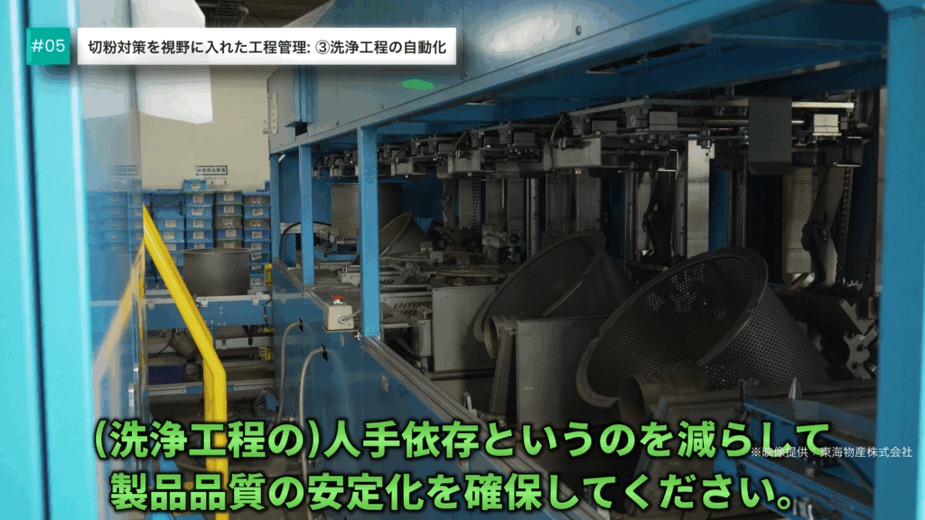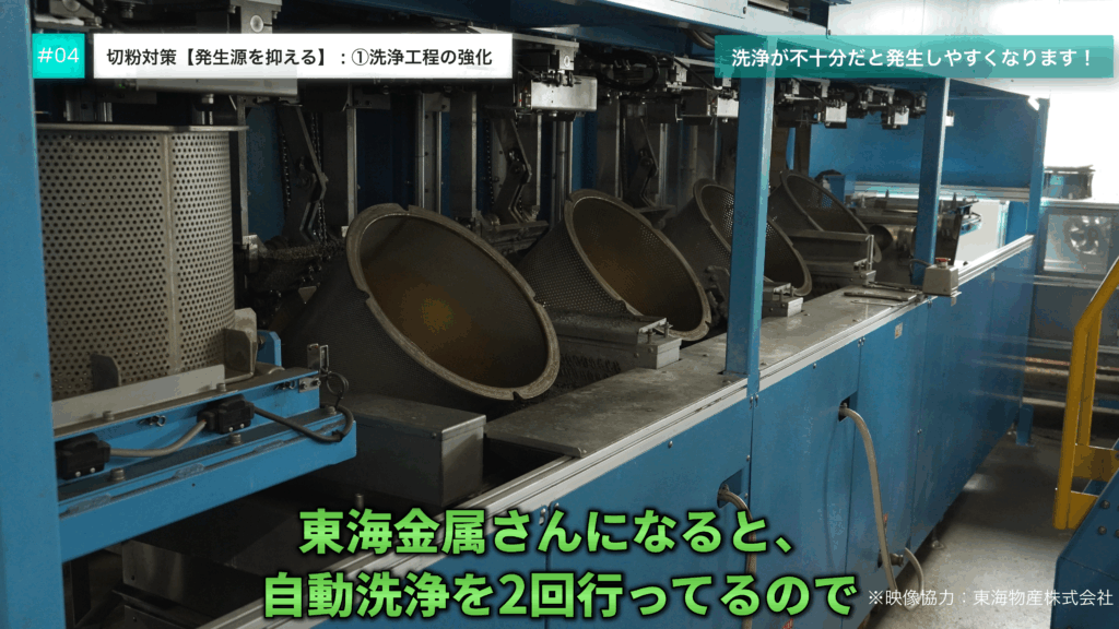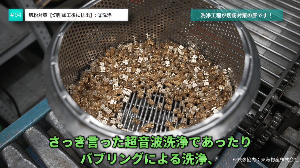 この洗浄工程の精度が、切粉対策の成果のほとんどを占めると言って過言ではありません。