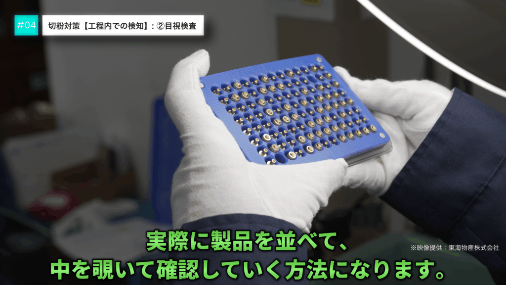 目視検査は一見軽視されがちですが、人間の目は非常に優秀で、経験を積んだ検査員であれば高い精度で切粉を見つけ出すことができます。実は、人の目による検査は決して侮れないのです。