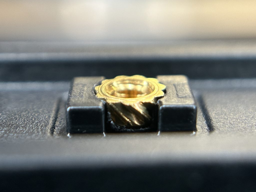 お客様の要望するインサートナットは、ローレット形状が特殊で樹脂が溢れてしまう、樹脂被りが多く不良品になるとの相談でした。
