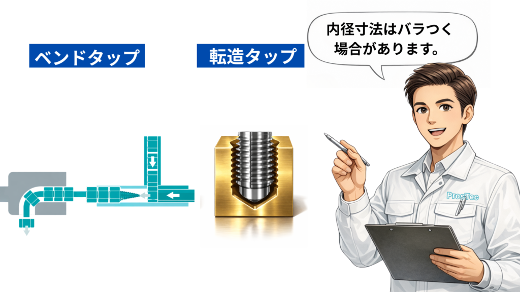 内径は材料の塑性変形によって形成されるため、