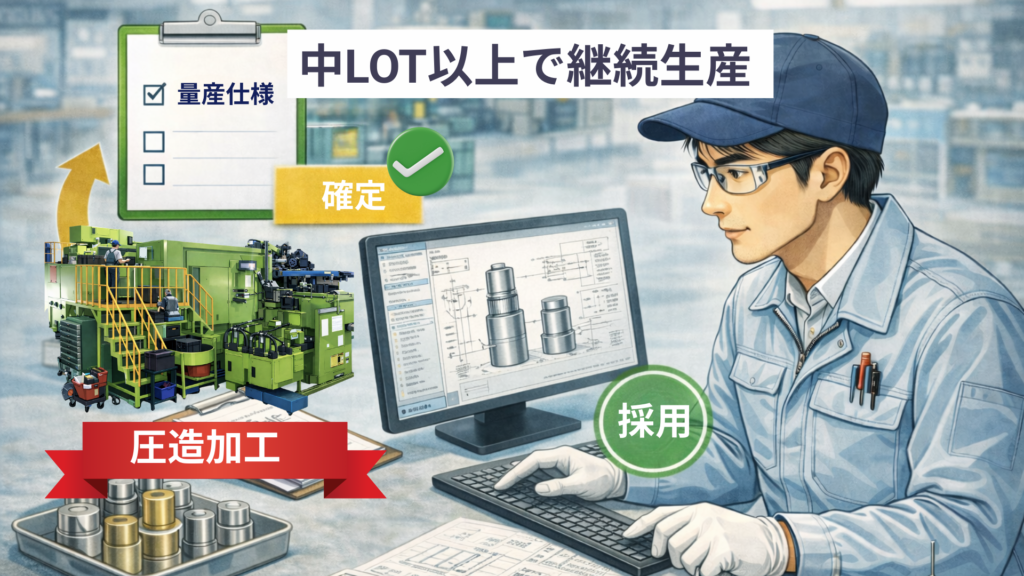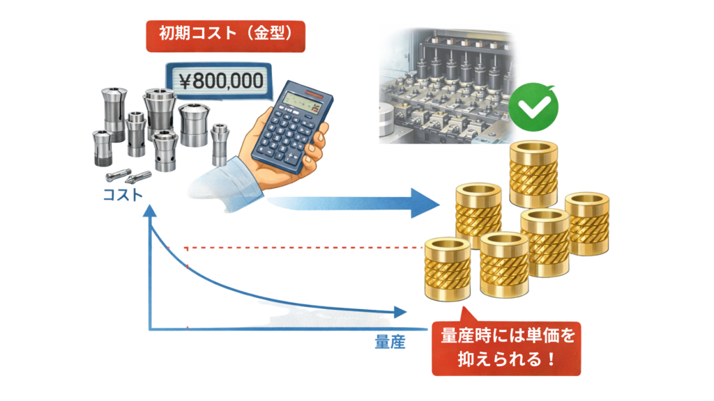 月産10万個以上の継続生産で採用されるケースが一般的です。